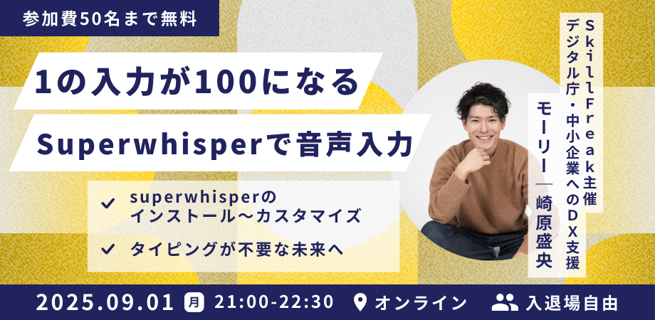 先日開催されたビジネスセミナーでは、音声入力ツール「Superwhisper」をテーマに、DXコンサルタントとして活躍するモーリー氏をゲストに迎え、その革新的な活用法が紹介されました。 モーリー氏は、従来の音声入力が単なる文字起こしにとどまっていたのに... -